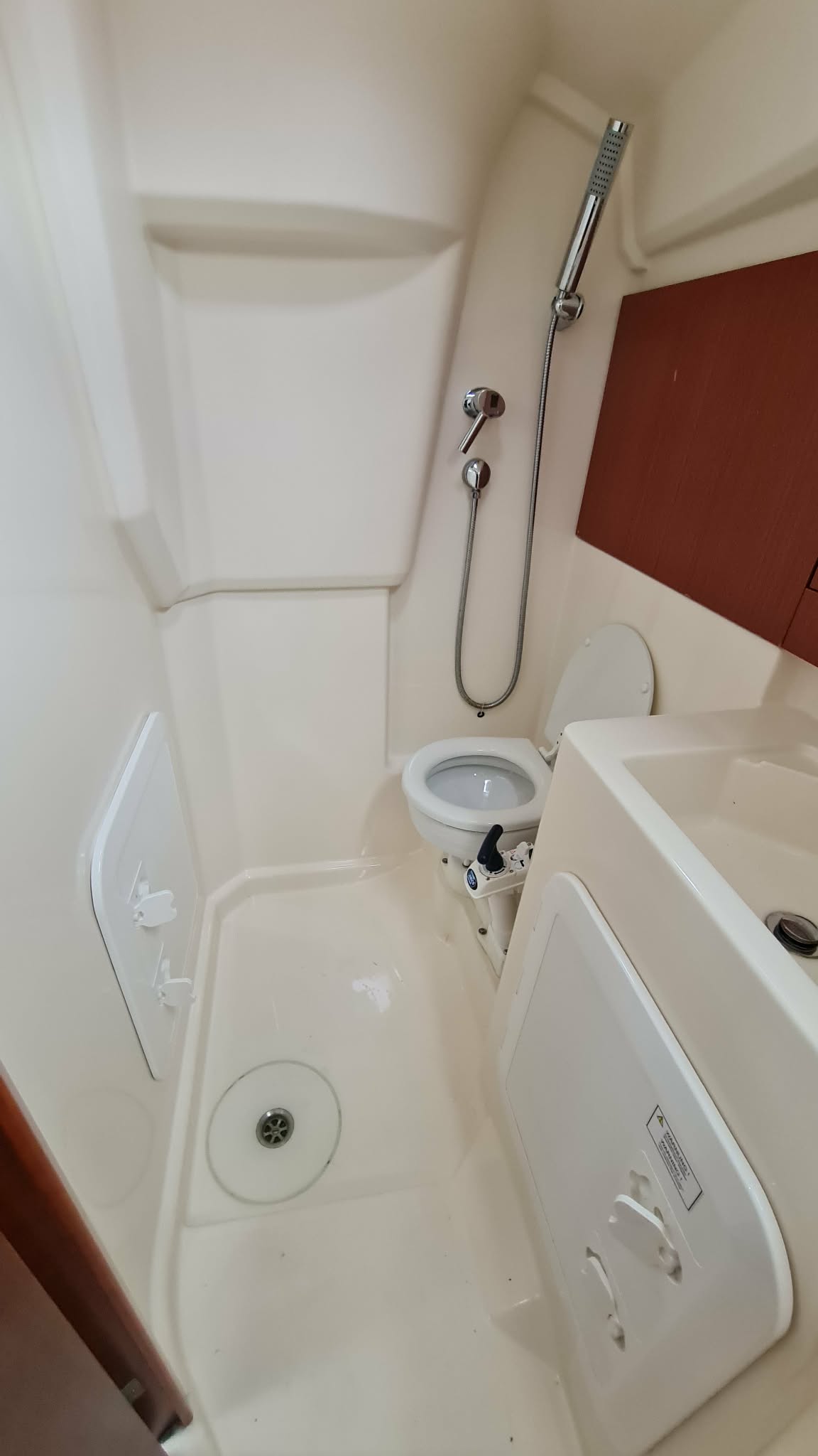 - Shower with hot water in the cockpit